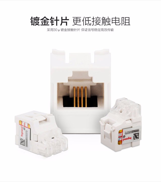 商品名稱:羅格朗電(diàn)話(huà)模塊 2£芯4芯通(tōng)用(yòng)RJ11鍍金(jīn)網絡模塊 電(diàn)話(huà)模塊C3M0011單隻裝(隻配套羅格朗)