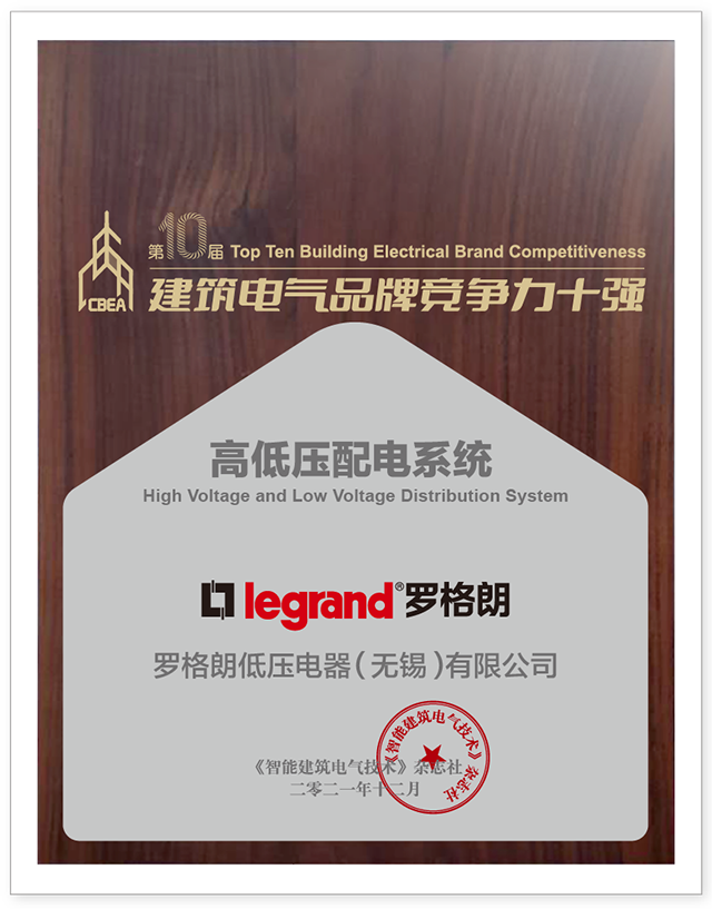 2021年(nián)羅格朗低(dī)壓電®(diàn)器(qì)(無錫)有(yǒu)限公司參加“第10屆工(®gōng)程勘察設計(jì)行(xíng)業(yè)·建築電(diàn)氣品牌競争力十強”評審活動。